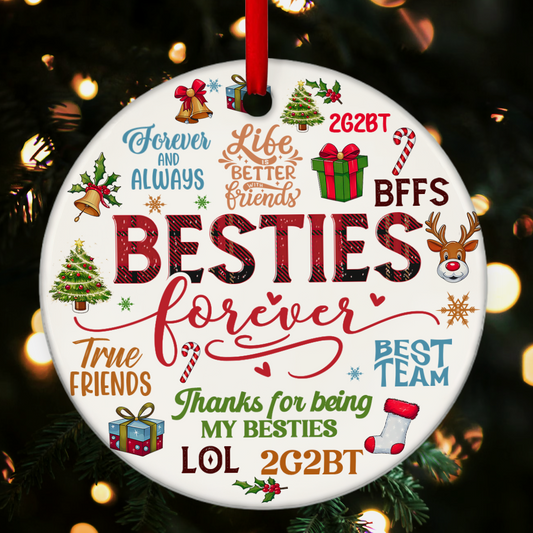 Besties Forever - Personalized Round Shaped Ceramic Ornament