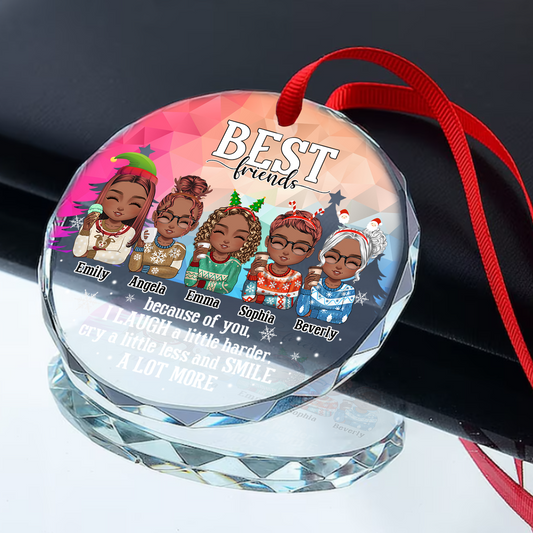Because Of You I Laugh A Little Harder - Personalized Round Glass Ornament