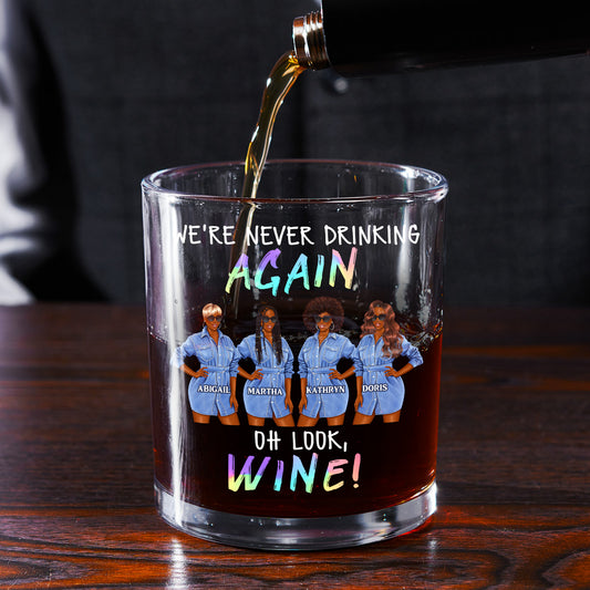 We're Never Drinking Again - Personalized Round Whiskey Glass