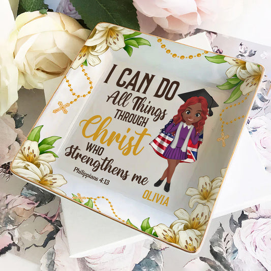 Christ Who Strengthens Me - Personalized Ceramic Ring Dish Square