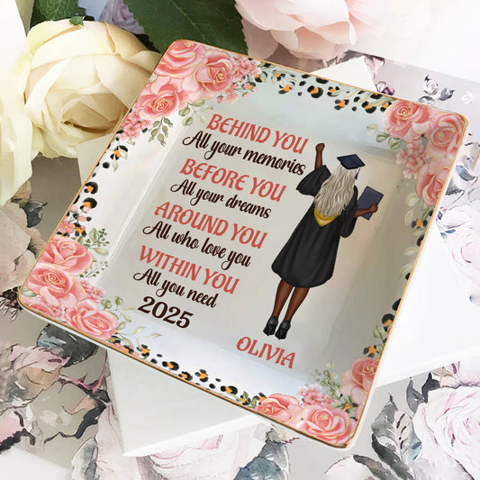 Behind You All Your Memories - Personalized Ceramic Ring Dish Square
