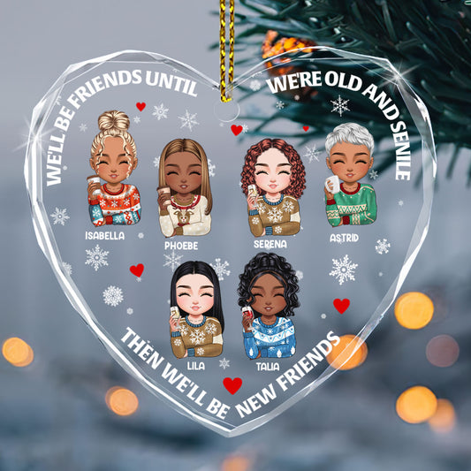 We Will Be Friends Until We Are Old And Senile - Personalized Heart Shaped Glass Ornament