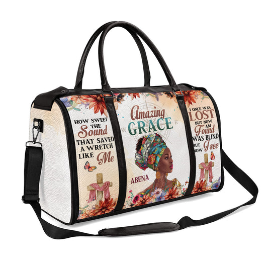 Amazing Grace How Sweet The Sound - Personalized Leather Duffle Bag SBDFLM1265TA