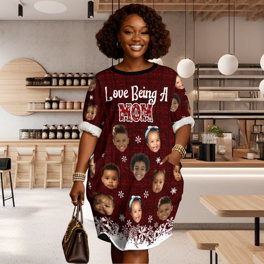 Love Being A Grandma - Personalized AOP Loose Pocket Oversize T-Shirt Dress