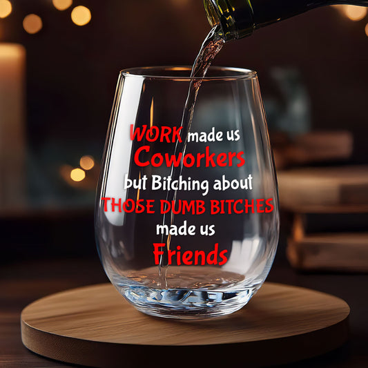 Work Made Us Coworkers - Personalized Stemless Wine Glass