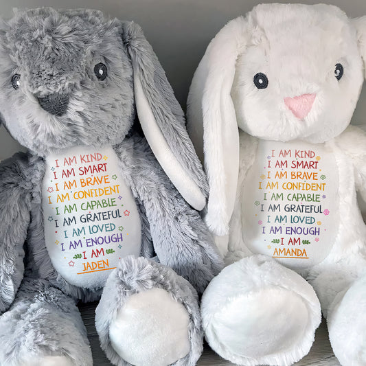 I Am Kind I Am Smart - Personalized Stuffed Bunny