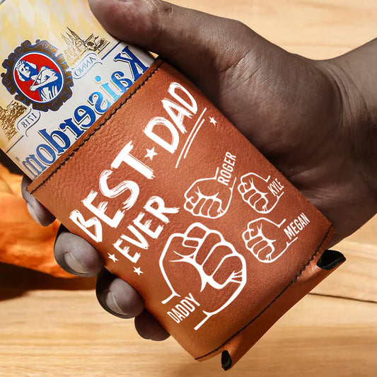 Best Dad Ever - Personalized Leather Can Cooler