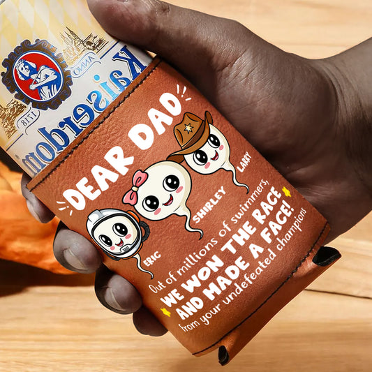 We Won The Race - Personalized Leather Can Cooler