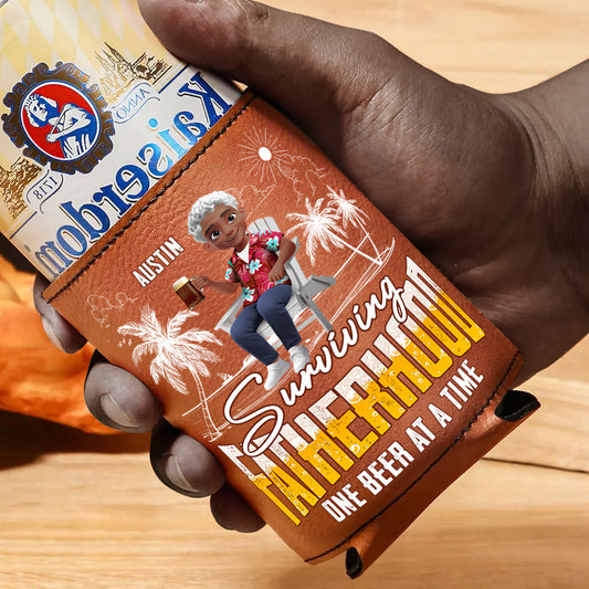 Surviving Fatherhood - Personalized Leather Can Cooler