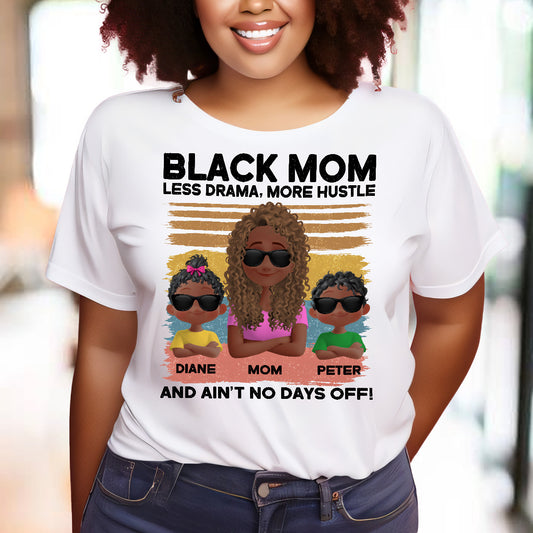 Black Mom Less Drama More Hustle And Ain't No Days Off - Personalized 2D Unisex T-shirt