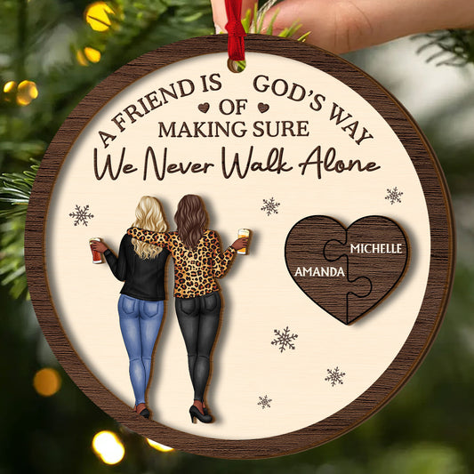 A Friend Is God's Way Of Making Sure We Never Walk Alone - Personalized 2-Layered Wooden Ornament