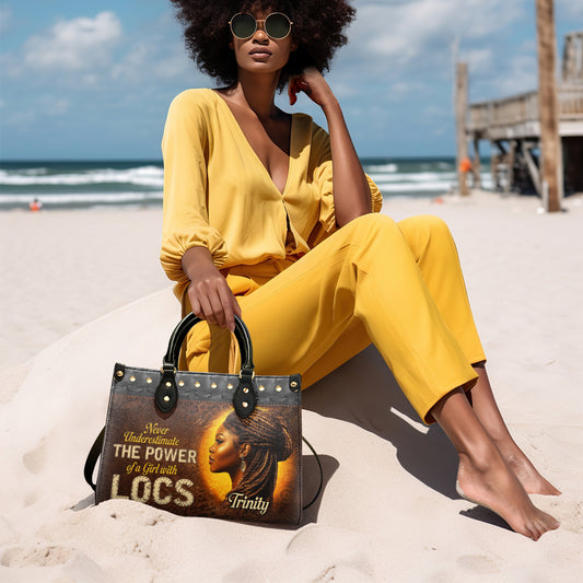 Never Underestimate The Power Of A Girl With Locs - Personalized Leather Handbag