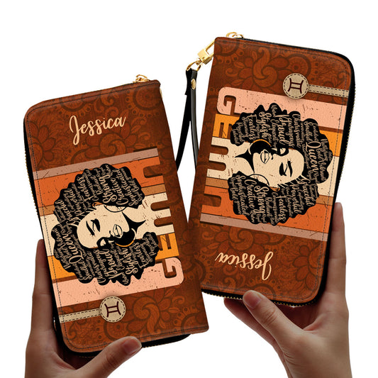 Zodiac Queen - Personalized Leather Clutch Purse SBCPLN2567M