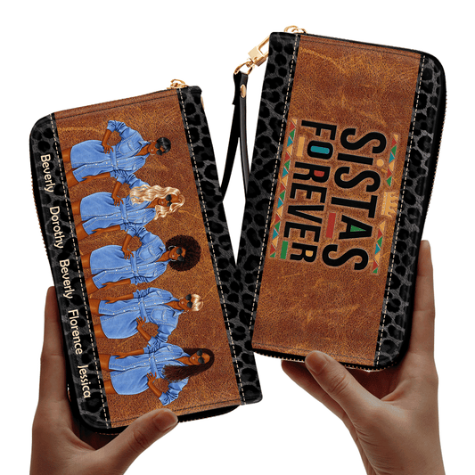 Sisters Forever - Personalized Leather Clutch Purse SBCPLM2207L