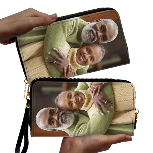 Wife Husband Couple Custom Photo - Personalized Leather Clutch Purse SBCPLM2116M