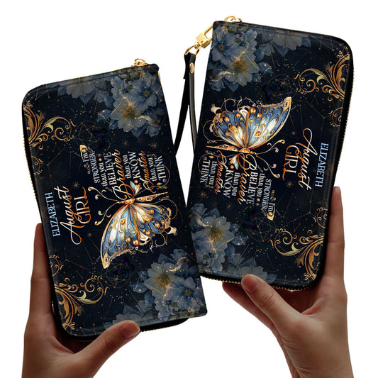 I'm Stronger Than You Believe Month Girl - Personalized Leather Clutch Purse SBCPLM1286M