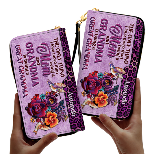 Mom Grandma Great Grandma Hummingbird - Personalized Leather Clutch Purse SBCPLM2553D