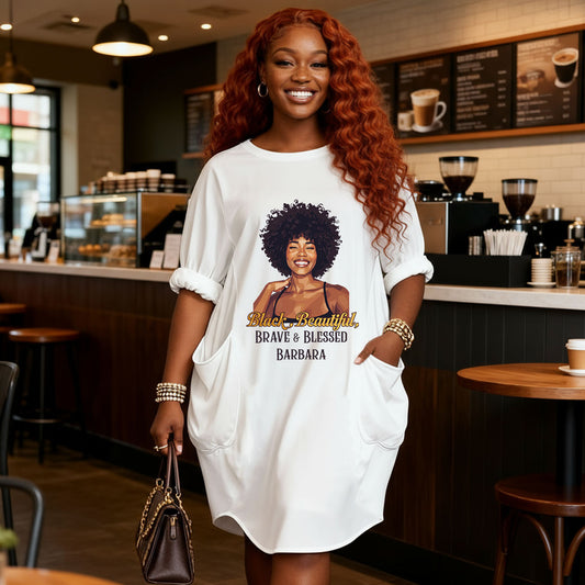 Black Beautiful Brave & Blessed - Personalized Loose Pocket Oversize T-Shirt Dress