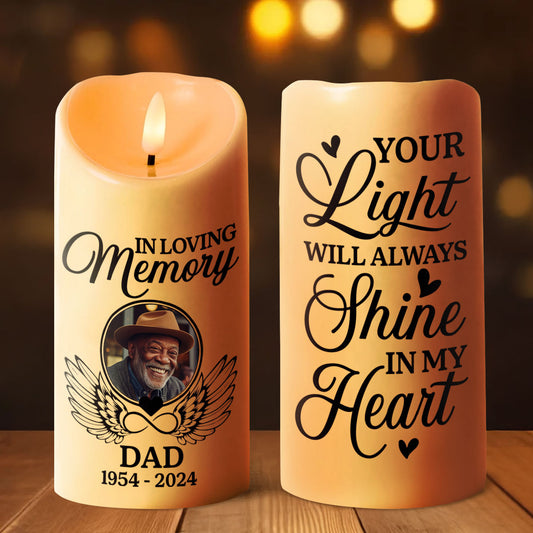 Your Light Will Always Shine In My Heart - Personalized Flameless LED Candle