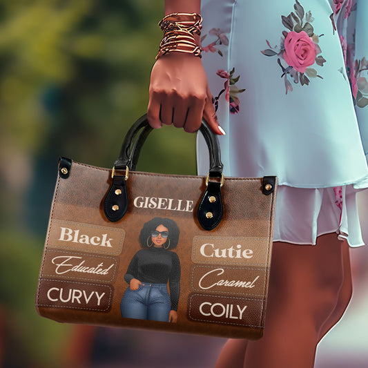 Black Educated Curvy Caramel Cutie Girl - Personalized Leather Handbag SBLHBLN948D