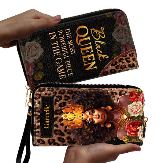 Black Queen is Powerful - Personalized Leather Clutch Purse MB24