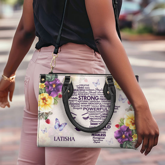 I am BOLD, LOVED, STRONG, RESILIENT - Personalized Leather Handbag SBHN03