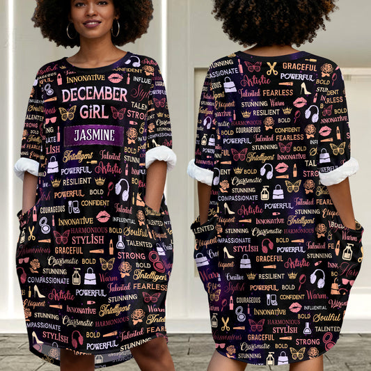 Month Girl - Personalized AOP Loose Pocket Oversize T-Shirt Dress