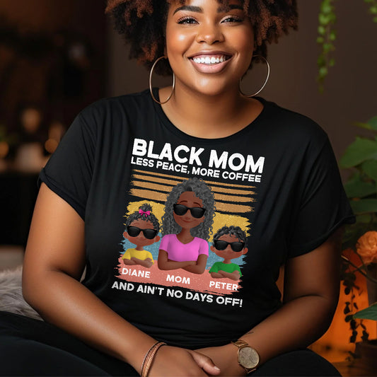 Black Mom Less Peace More Coffee And Ain't No Days Off - Personalized 2D Unisex T-shirt