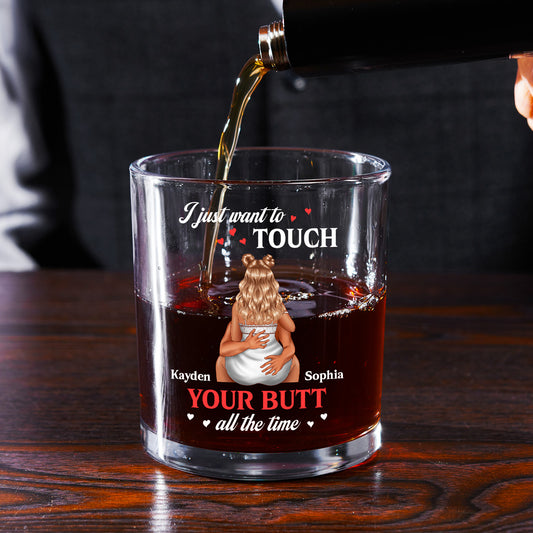 I Just Want Touch Your Butt All The Time - Personalized Round Whiskey Glass