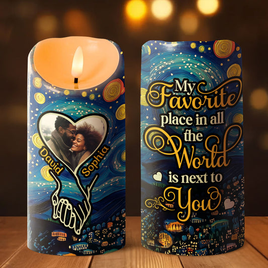 My Favorite Place In All The World Is Next To You - Personalized Flameless LED Candle