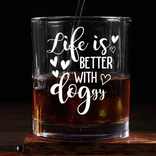 Life Is Better With Doggy - Personalized Round Whiskey Glass
