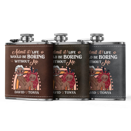Life Would Be Boring Without Me - Personalized Leather Flask