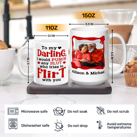 I Would Punch Any Slut Who Tries To Flirt With You - Personalized White Ceramic Mug