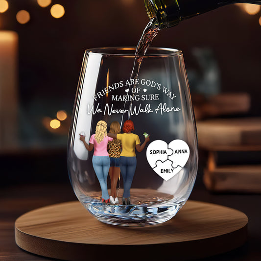 Friends Are God's Way Of Making Sure We Never Walk Alone - Personalized Stemless Wine Glass