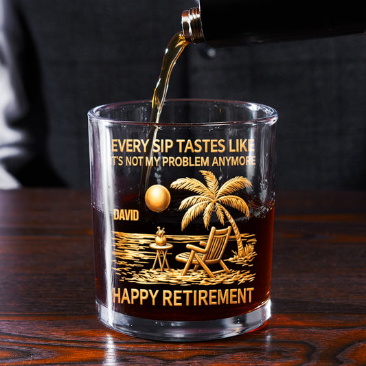 Every Sip Tastes Like Happy Retirement - Personalized Round Whiskey Glass
