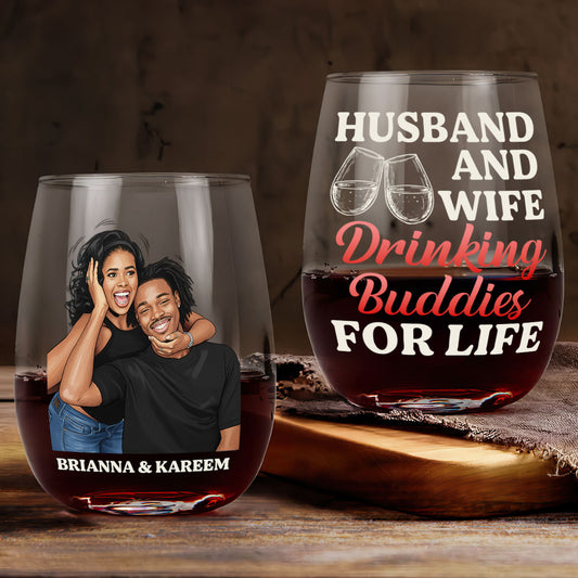 Drinking Buddies For Life - Personalized Stemless Wine Glass