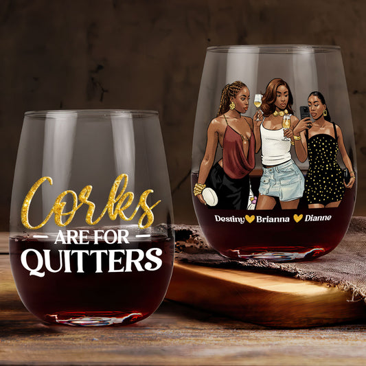 Corks Are For Quitters - Personalized Stemless Wine Glass