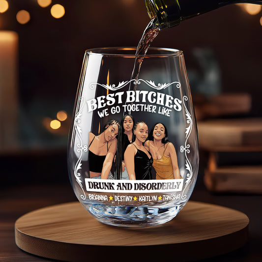 We Go Together Like Drunk and Disorderly - Personalized Stemless Wine Glass