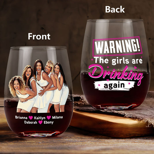 The Girls Are Drinking Again - Personalized Stemless Wine Glass