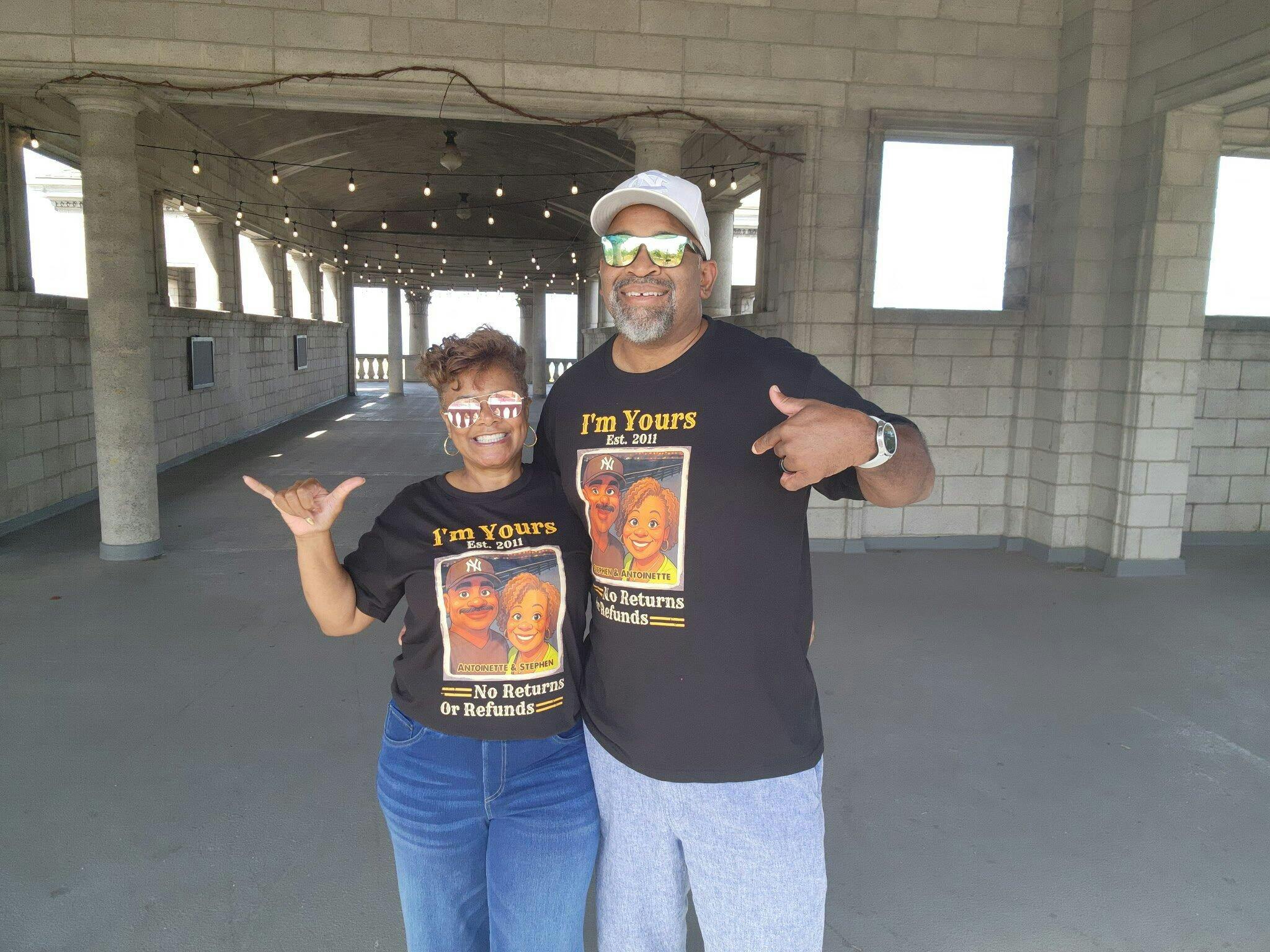 I bought the tshirts to commemorate our anniversary and they did not disappoint! They're quality t-shirts and the picture is a realistic caricature! We received so many compliments on our tshirts. Thank you for producing a quality product.