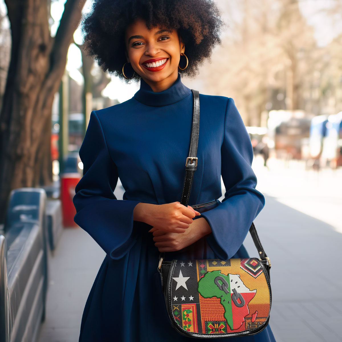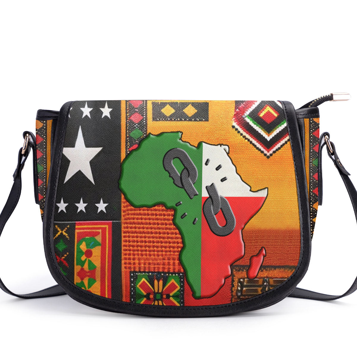 Africa Map - Juneteenth Leather Saddle Cross Body Bag SBSADT61
