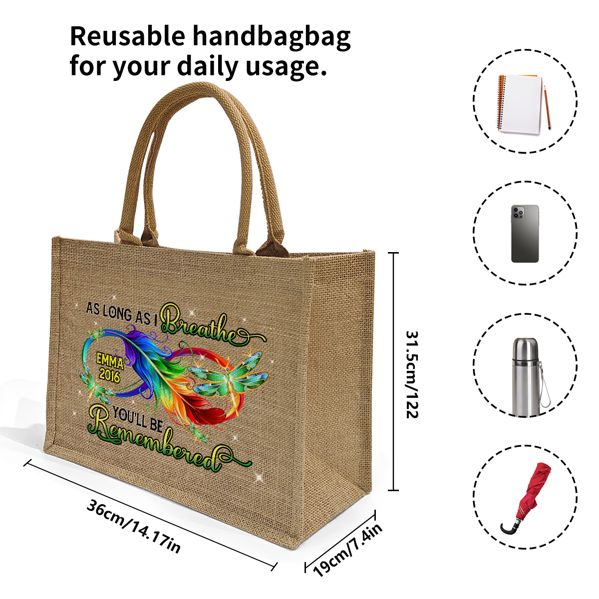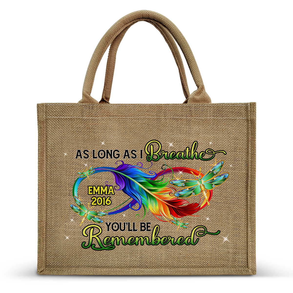 As Long As I Breathe You'll Be Remembered - Personalized Jute Tote Bag