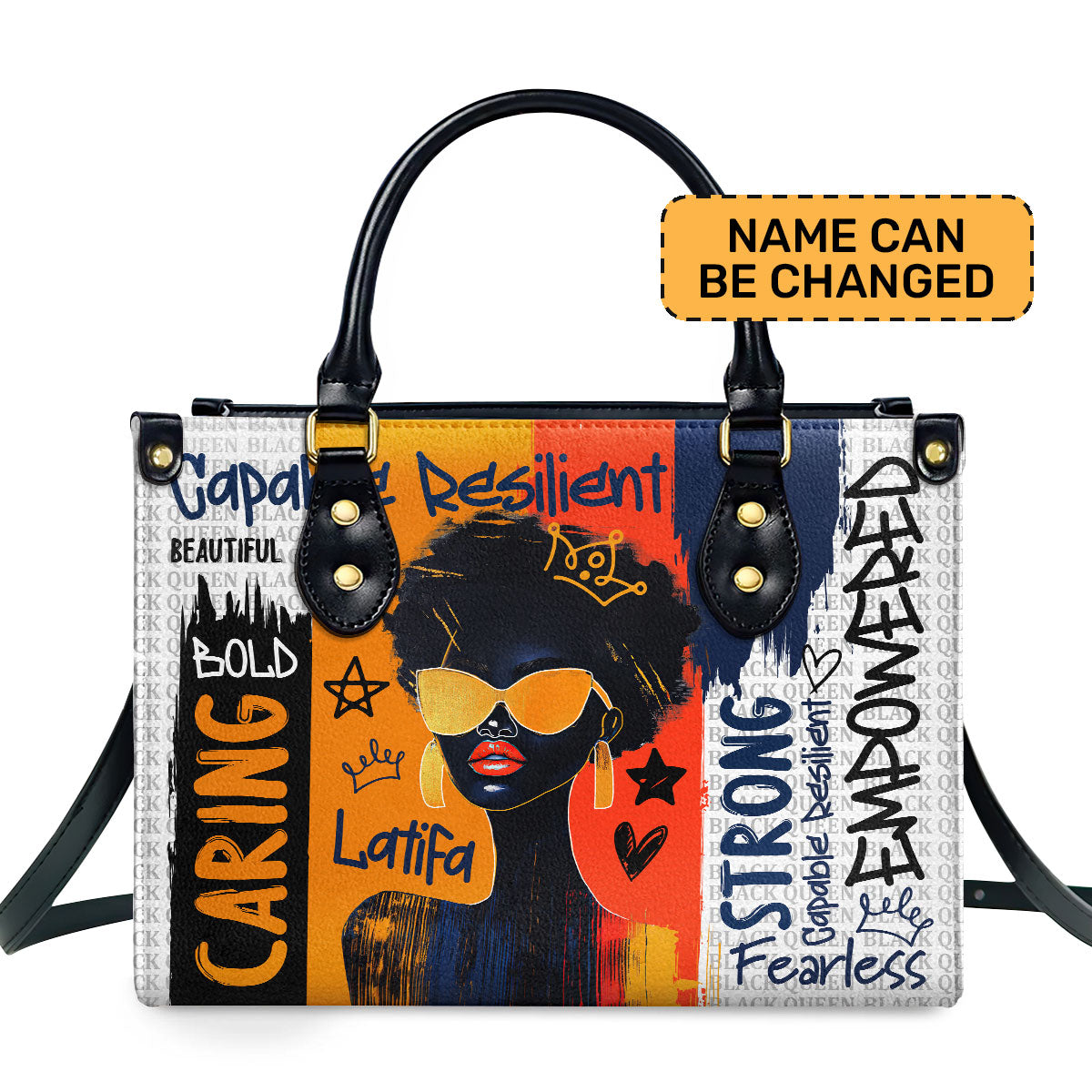 Black Queen Graffiti Style - Personalized Leather Handbag SBLHBLM1836TA