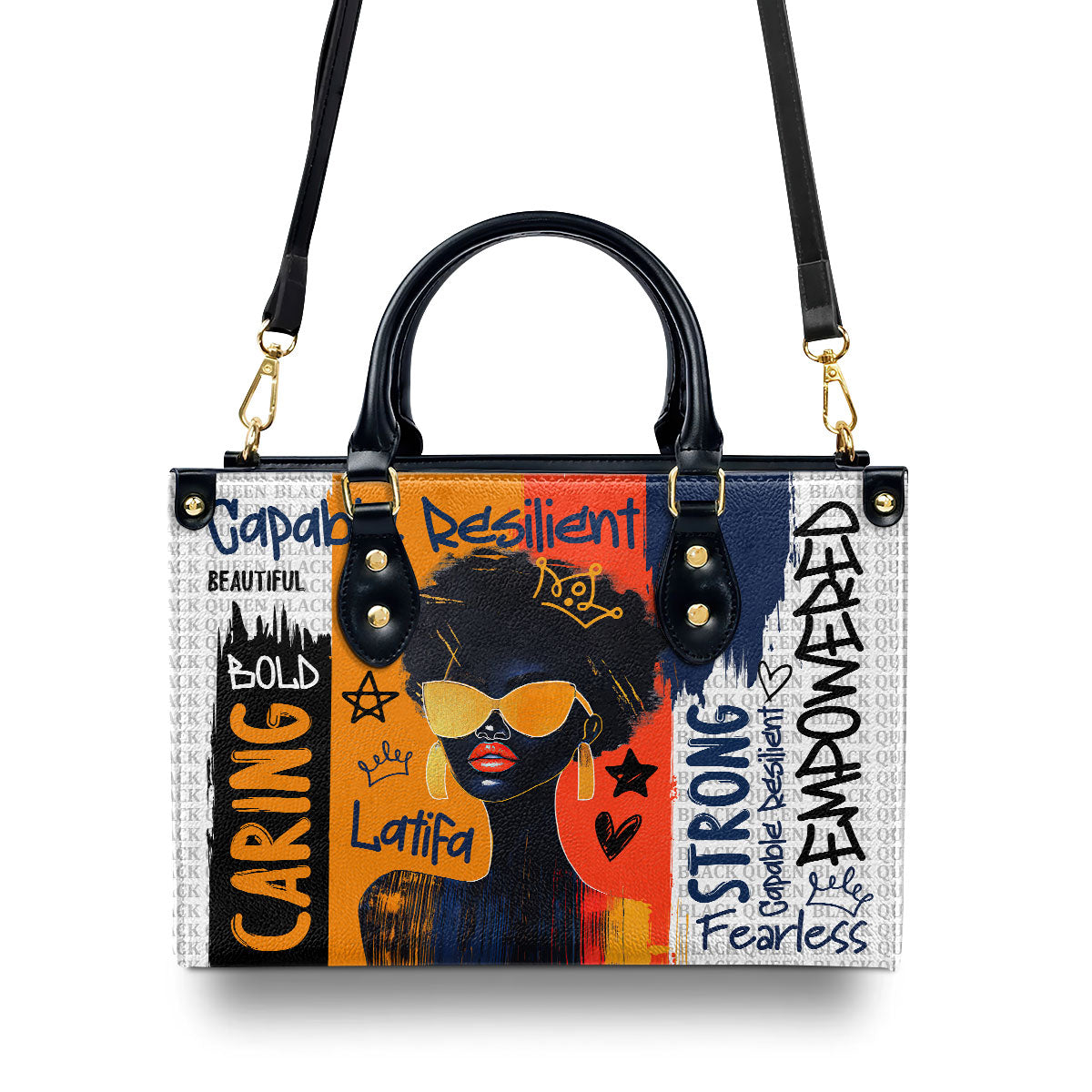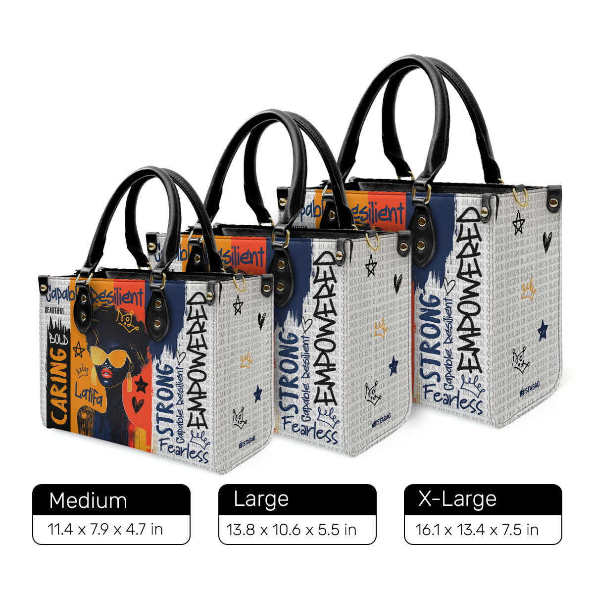 Introducing Sistabag's Leather Handbag - where style meets empowerment. Our handbags celebrate the spirit of Black women with diverse design themes and inspirational quotes. Carry your pride, embrace your beauty, and make a powerful statement with Sistabag.