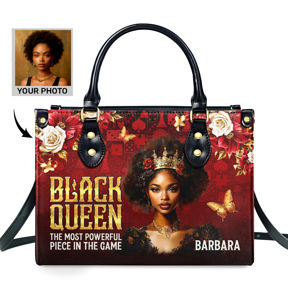 Black Queen Is Powerful - Personalized Leather Handbag