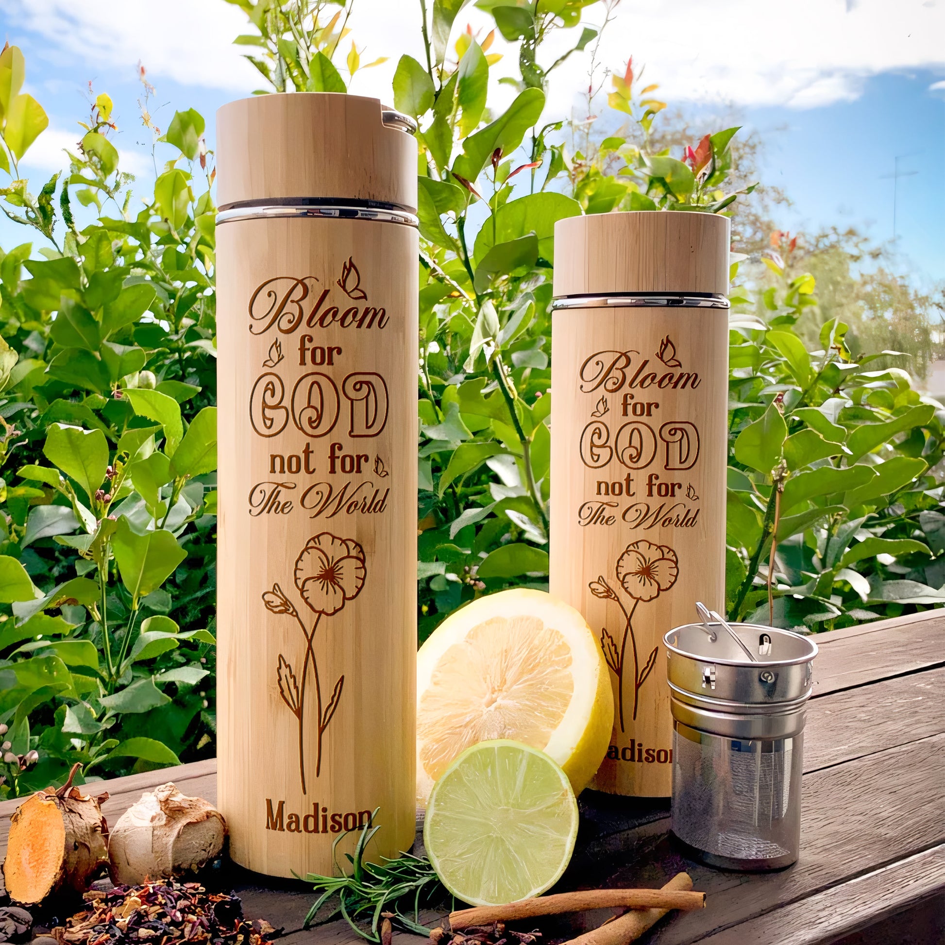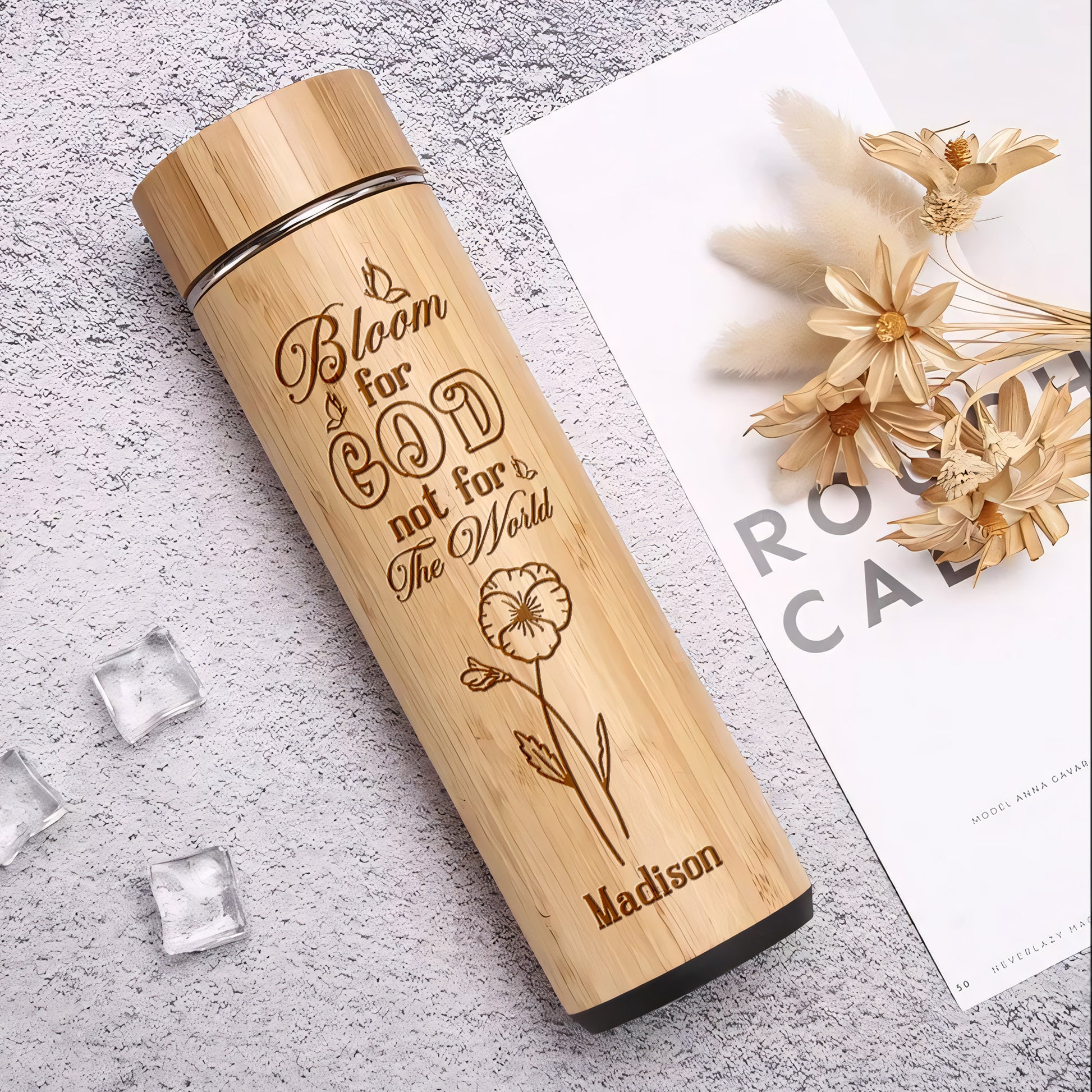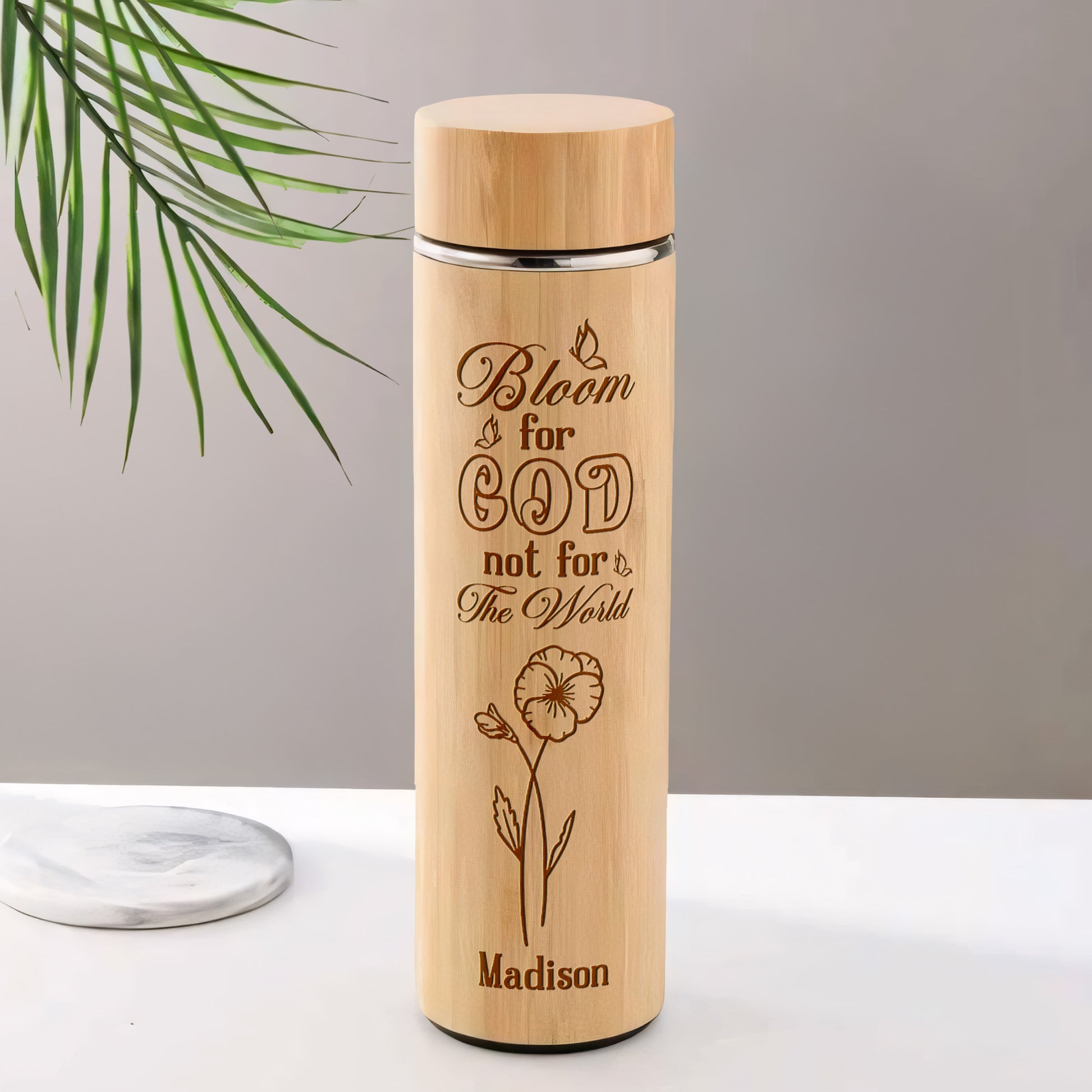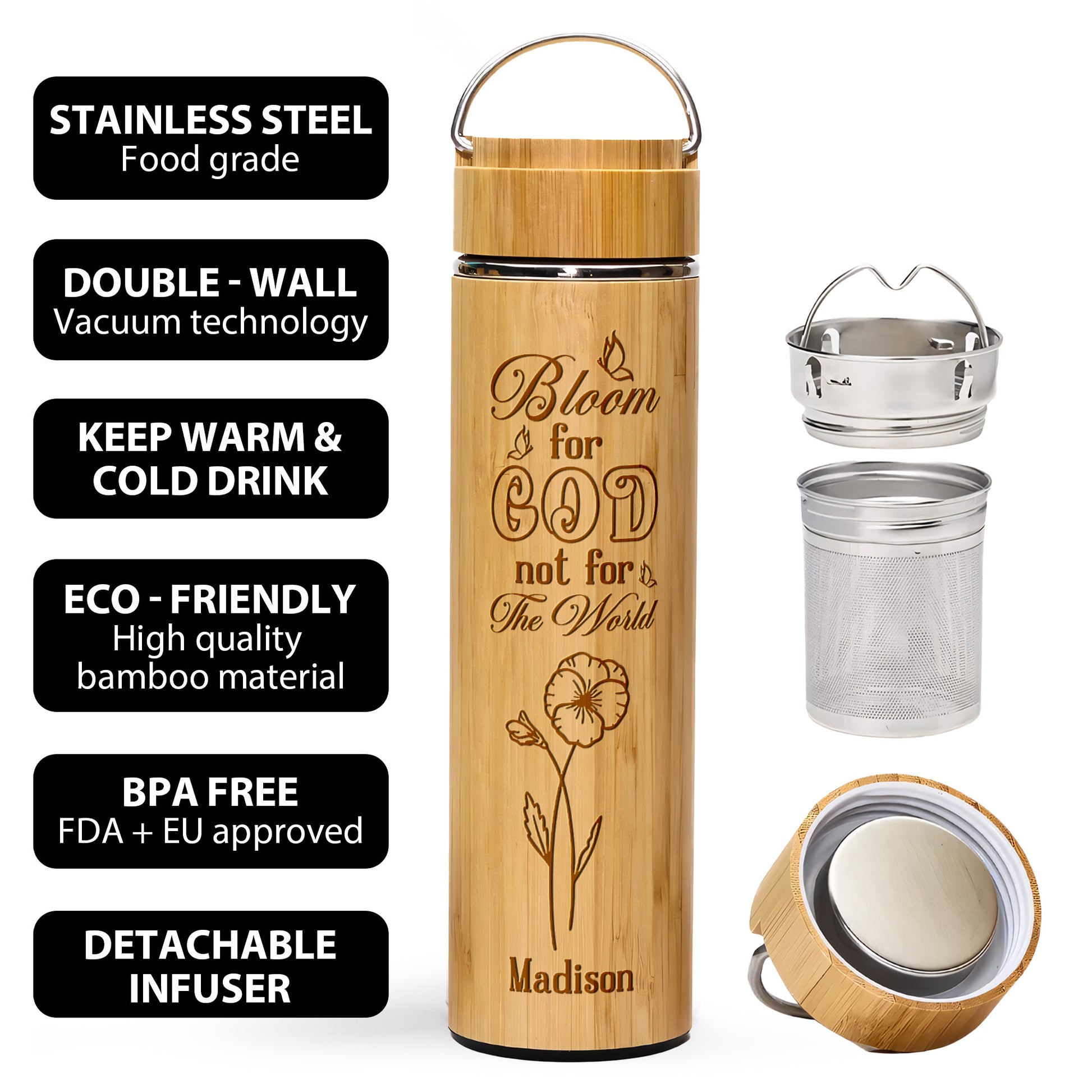 Bloom For God Not For The World - Personalized Stainless Bamboo Tumbler
