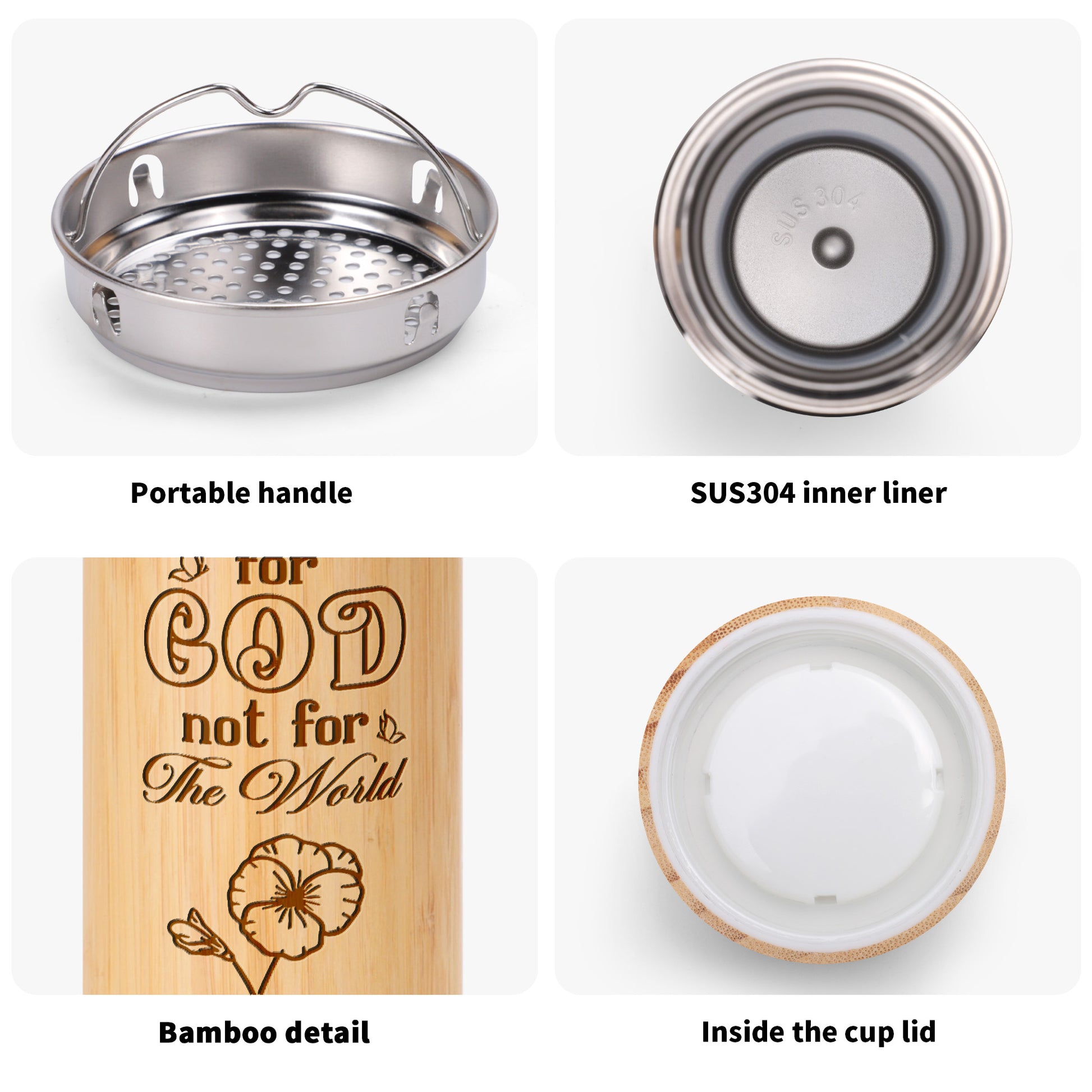 - Material: Made of premium bamboo material to avoid mold. Plastic free with high quality stainless steel recyclable, food safety.