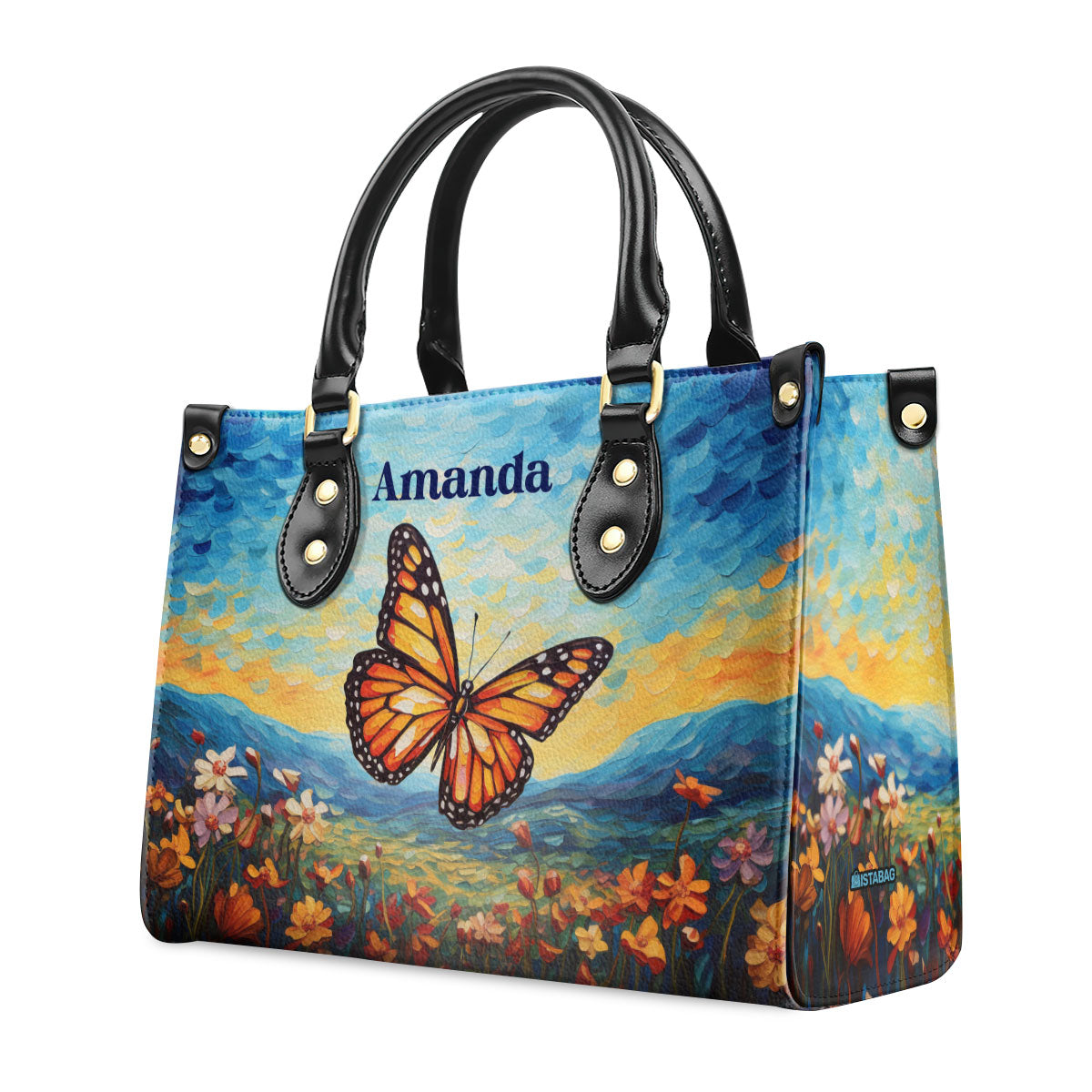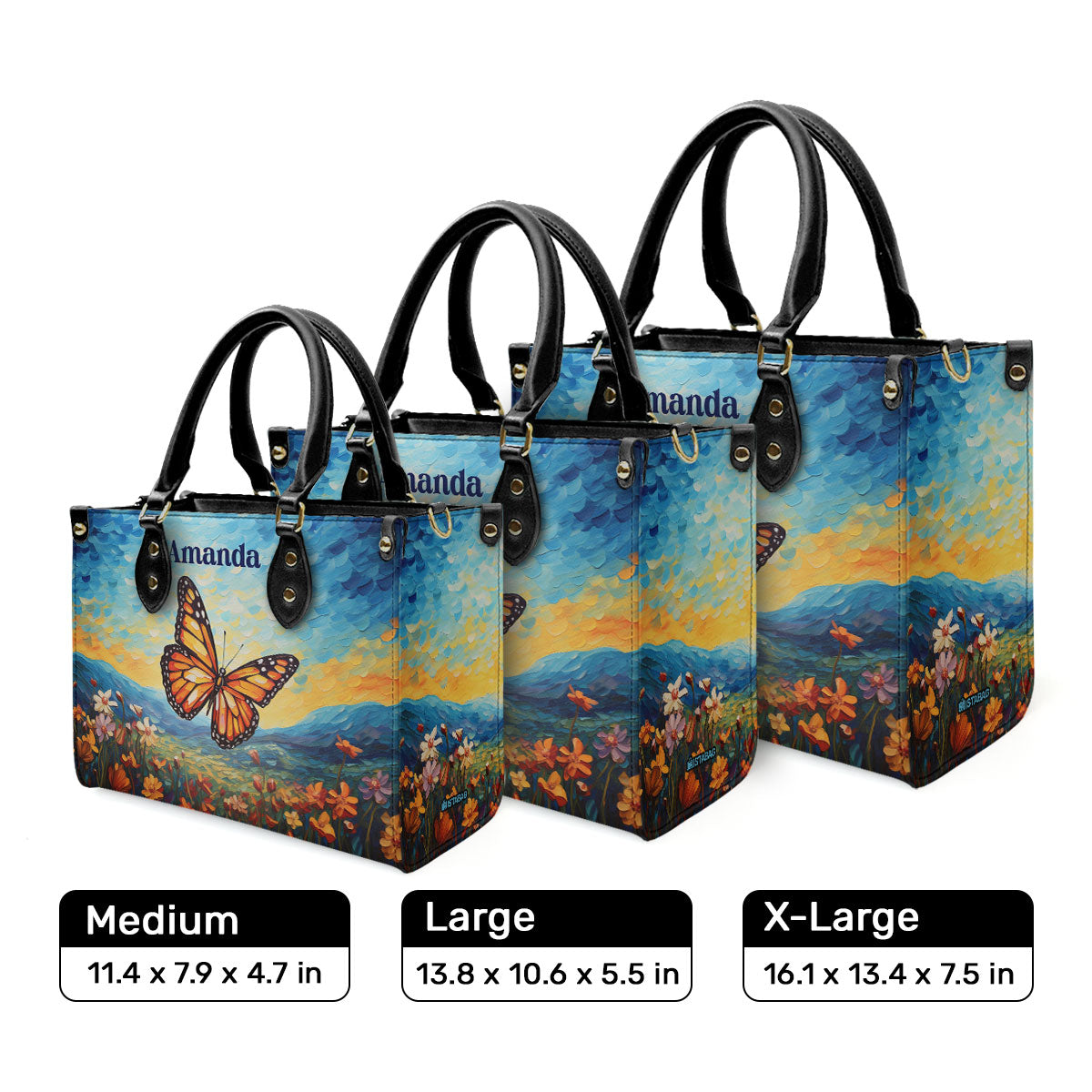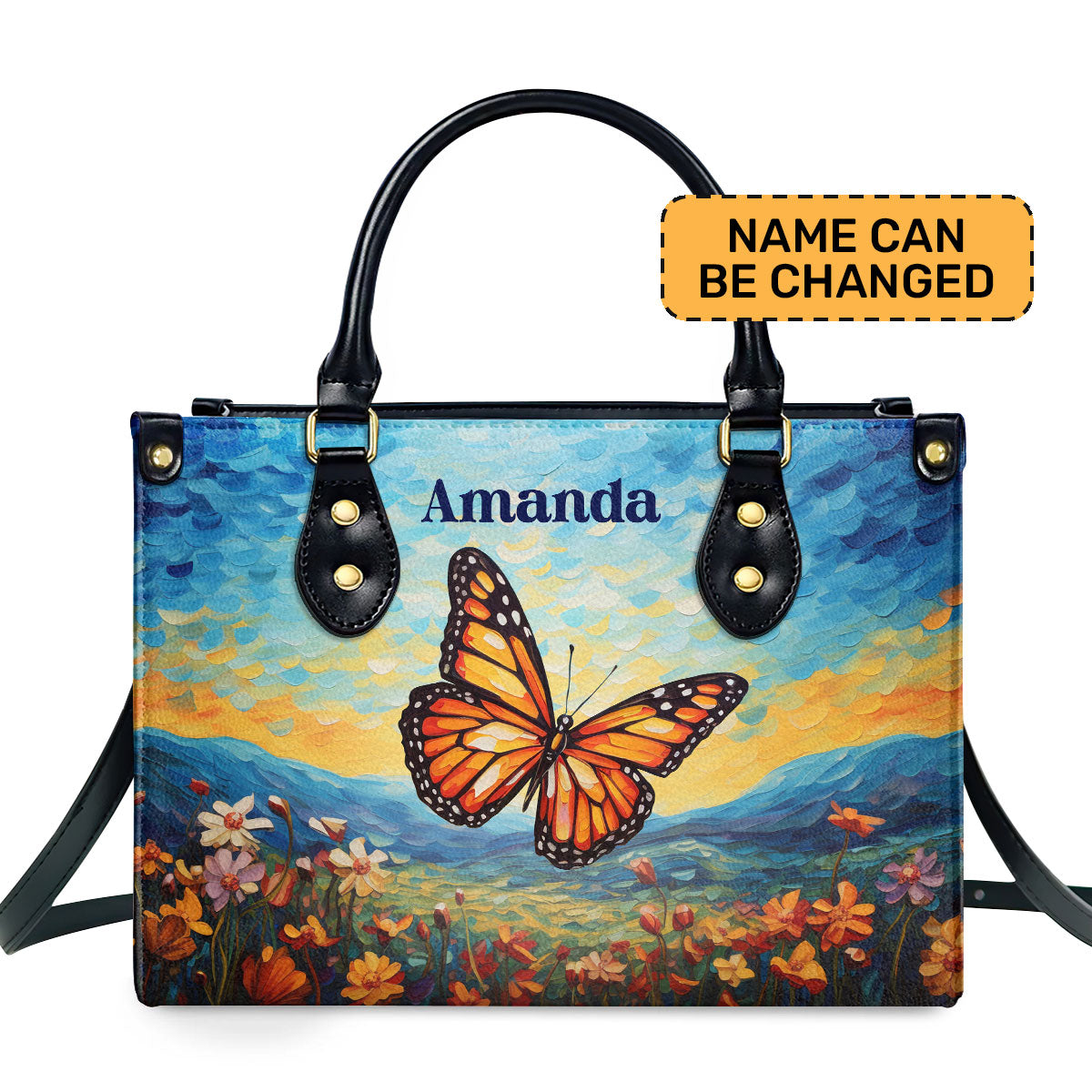 Butterfly In The Starry Night Style - Personalized Leather Handbag MSM07