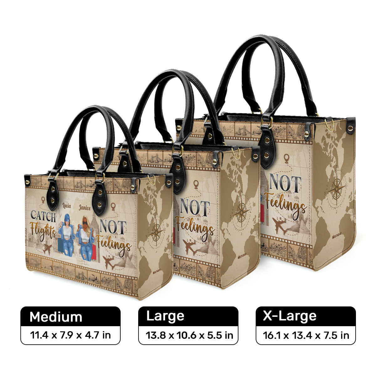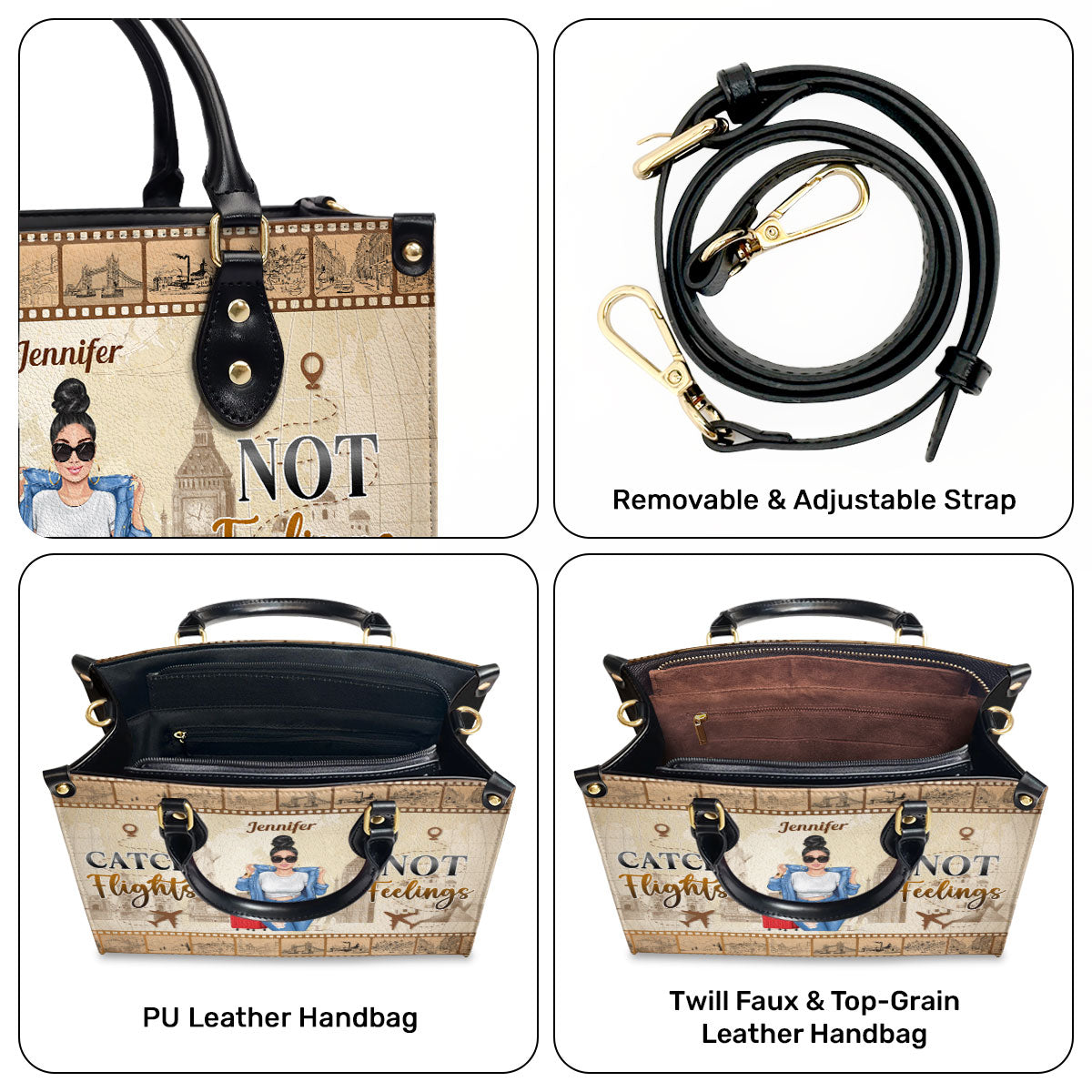 Catch Flights Not Feelings - Personalized Leather Hand Bag SBLHBHA38