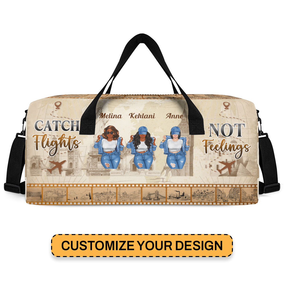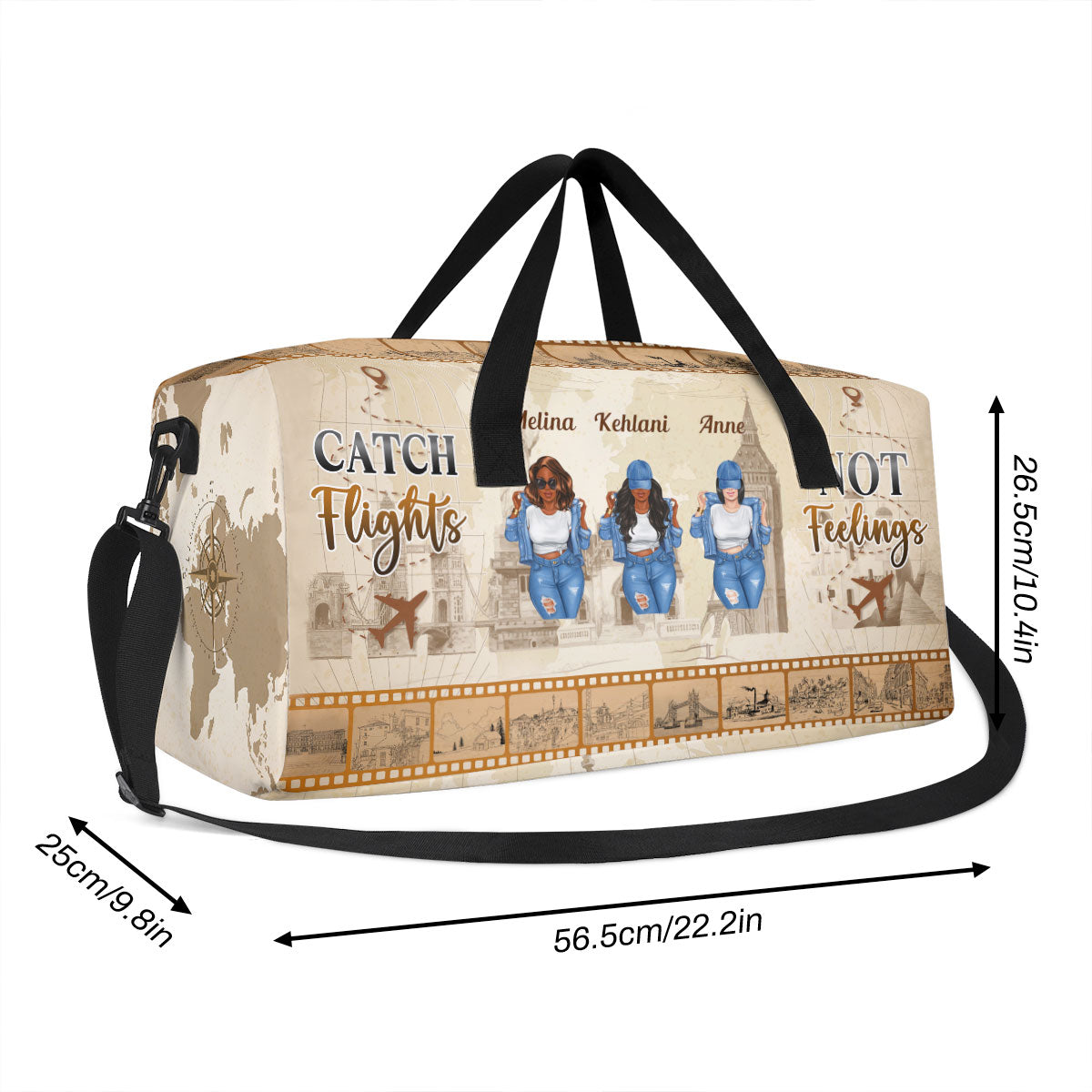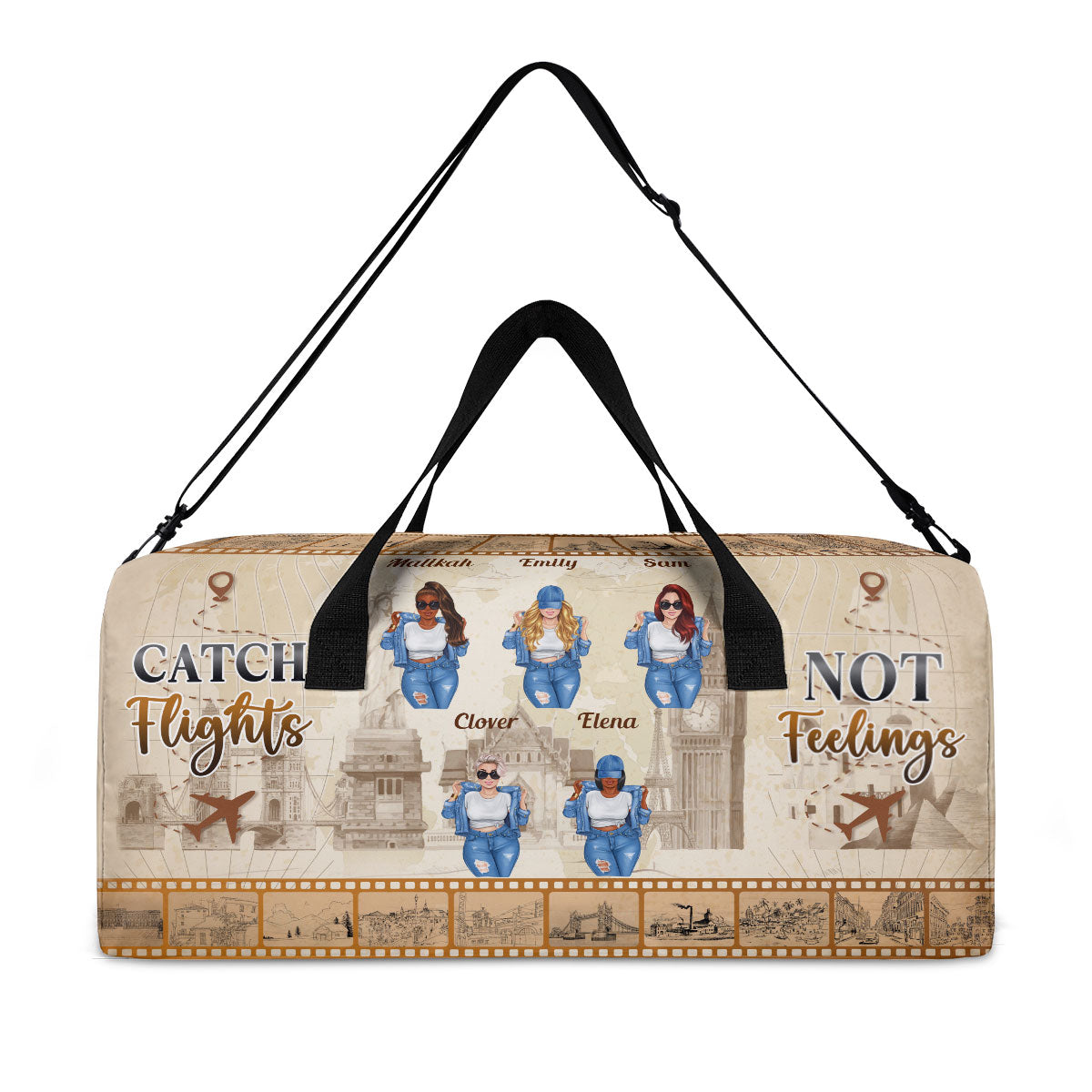 Catch Flights Not Feelings - Personalized Minimalist Duffle Bag SBMDBHA33